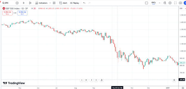 During the financial crisis, the SPX was already experiencing a downtrend.