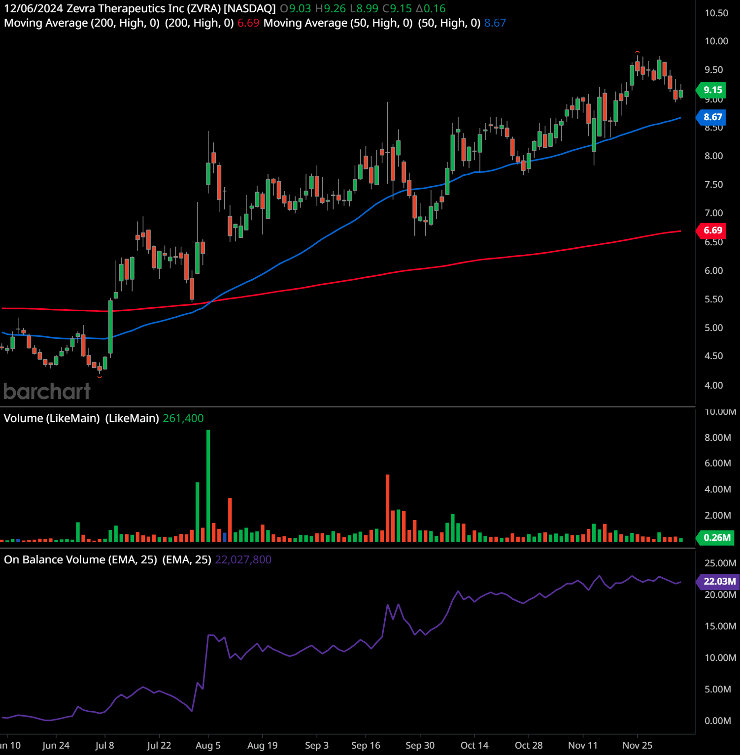 This chart of Zevra Therapeutics Inc. (ZVRA) on the daily timeframe provides several insights based on the technical indicators and patterns observed: