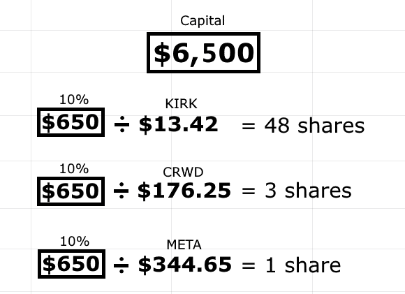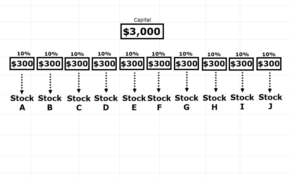For example, let’s say you have a capital of $3,000, and you’re allocating 10% of your capital per stock.