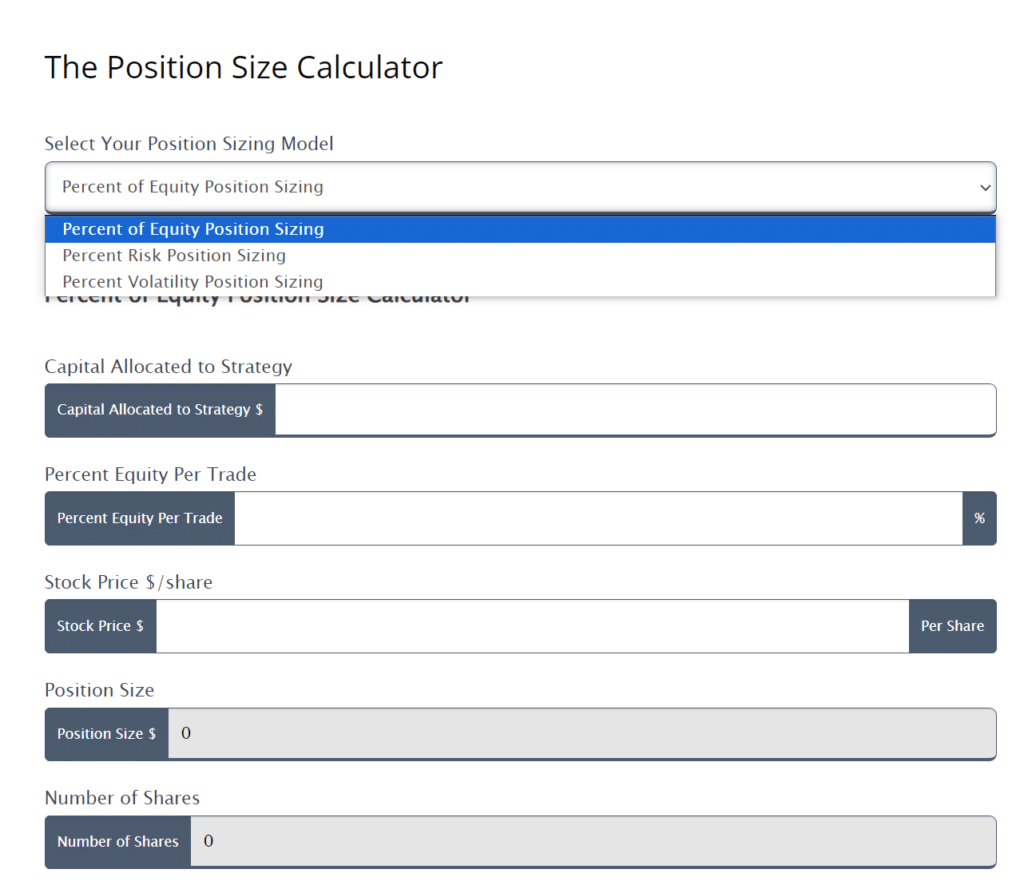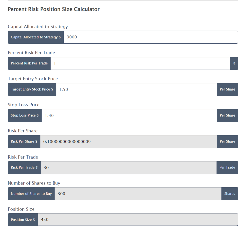 - There are free and accessible position sizing calculators ready for you to access, such as calculators from Enlightened Stock Trading.