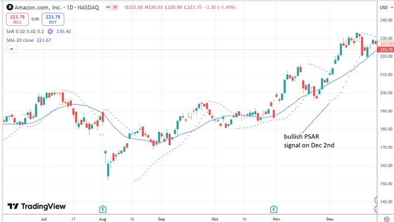 The PSAR indicator switched from bearish to bullish on December 2.