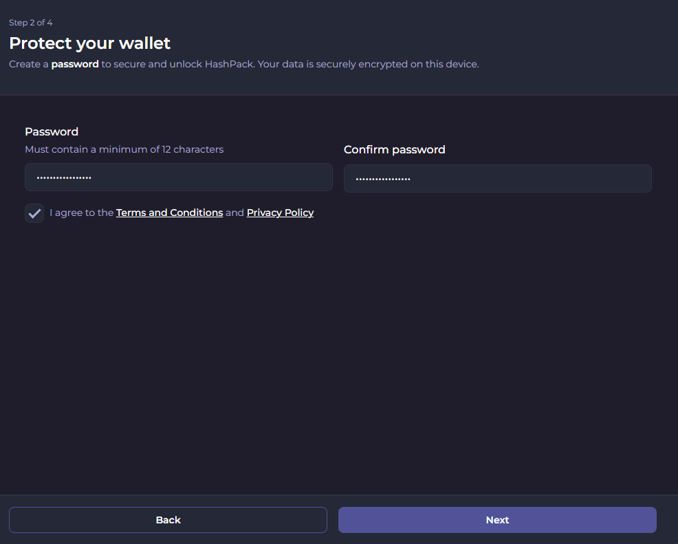 To create your HashPack wallet: