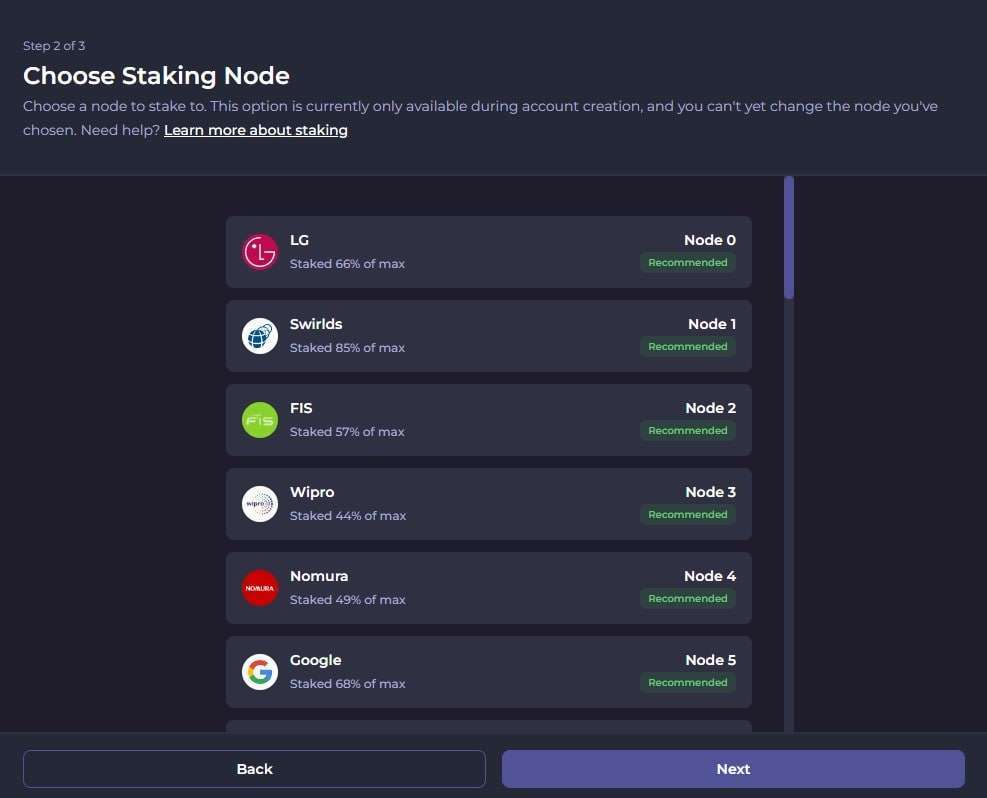 - After setting up your account, simply choose a staking node from the selection in the dashboard.
