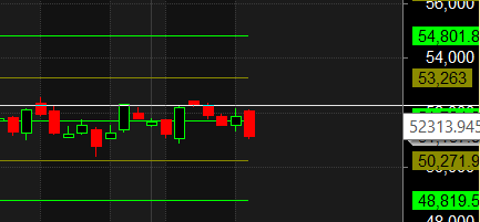 Currently, the price has returned to its 1×2 Gann angle support level. A breakdown below this support for two consecutive days could open up further downside potential, possibly targeting the 49,656-49,800 range.