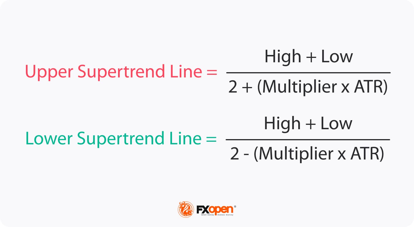 The Supertrend indicator is calculated using two key components: average true range (ATR) and a multiplier. The ATR measures the overall price range of an asset, offering an indication of its volatility. The multiplier allows traders to change the sensitivity of the indicator.