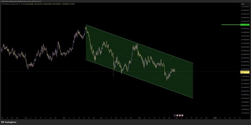 A more extended move, especially if the descending channel breaks, pulls the chart towards $55 to $60, Don’s long-term structural target. Strong volume and a close above $37 are the key confirmations.