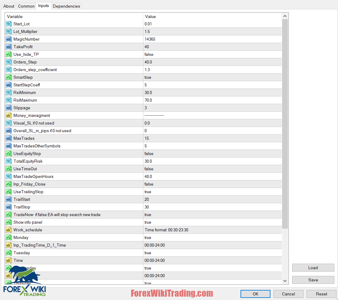 - Friday Trading Time: Customizes trading hours on Fridays to manage weekend risks.
