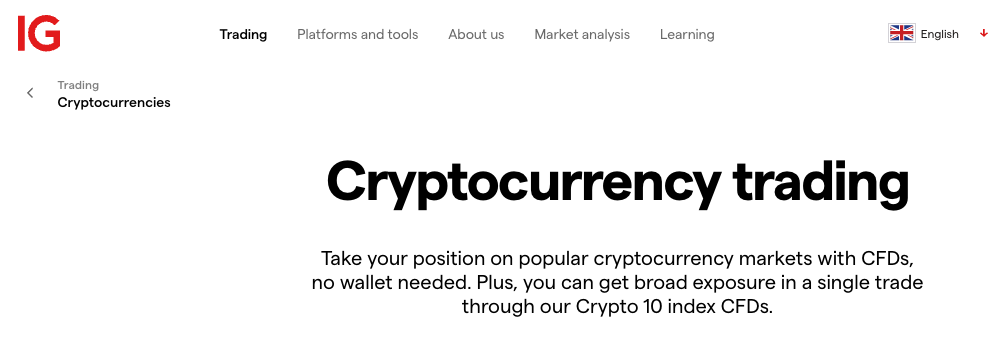In early 2021, IG halted its retail crypto offering in the UK following a temporary ban on crypto derivatives trading by the UK Financial Conduct Authority.