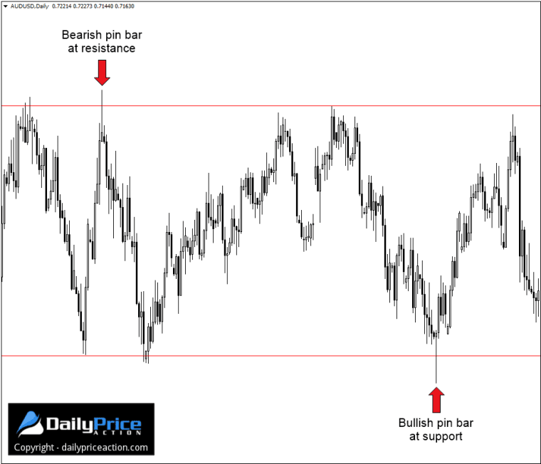 A perfectly formed pin bar in the middle of nowhere is useless. Sure, it may trigger a move, but it doesn’t have what we need for it to be tradable.