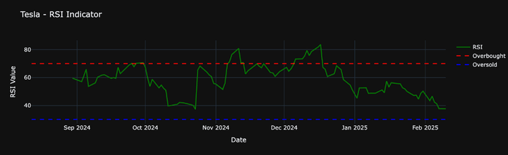 While primarily a momentum indicator, Relative Strength Indicator or RSI can also help confirm trends. For instance, if Tesla’s RSI is above 70, it might be overbought, suggesting a potential reversal.