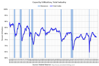 Capacity utilization at 77.6% is 2.1% below the average from 1972 to 2023. This was above consensus expectations.
