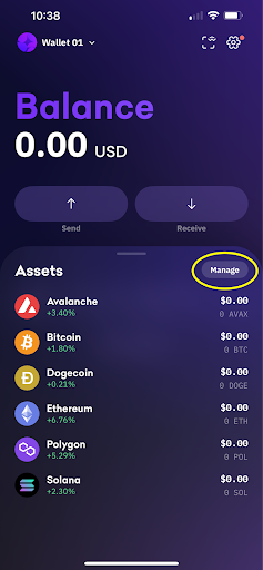 - Log in to your Kraken Wallet, navigate to Assets, and tap Manage