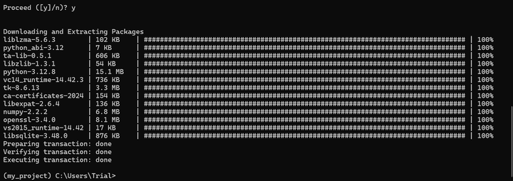 If there is no error, then it implies that we have successfully installed Ta-Lib. You should get a screen confirming the installation is done.