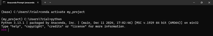 On the Anaconda command prompt, you will first type “python” to interpret the program.