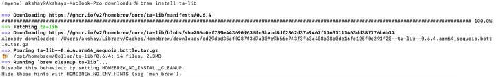 Great! We have been successful in our quest to install Ta-Lib on MacOS.
