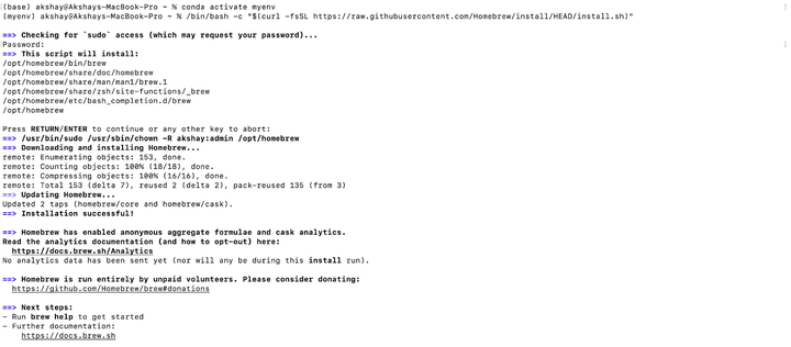 Of course, you will get a prompt which asks you to press “Return” to continue the installation or any other key to cancel the installation. If you are curious about the ‘brew’ command, you can always visit the following website to know more.