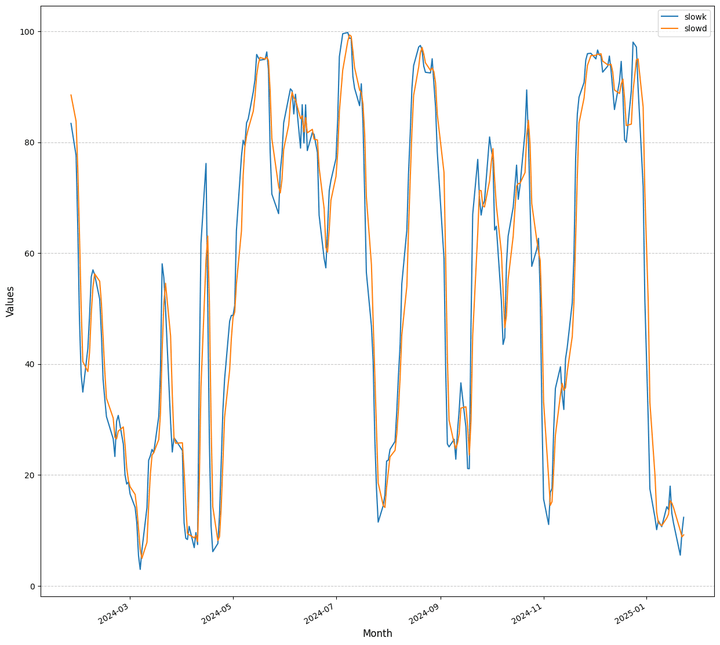 As a bonus, we plotted the Stochastic oscillators as well, the code is given below: