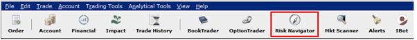 To open Risk Navigator inside Trader Workstation (TWS), navigate to Risk Navigator in the main header menus: