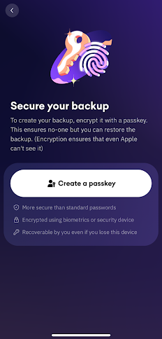 This new feature encrypts your 12-word SRP and securely stores it in a unique Passkey. By leveraging iCloud Keychain infrastructure, your Passkey is automatically synced across all your devices. This means you no longer have to worry about lost or new devices.