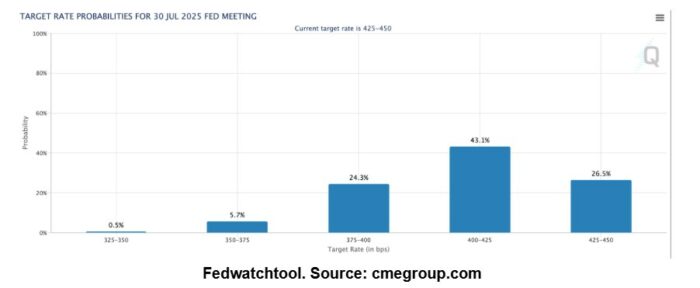 Political and “trade war” narratives remain intact, and interest rate expectations start to tighten. According to the Fedwatch tool from CME, traders expect the interest rate in the US to decline only in July 2025.