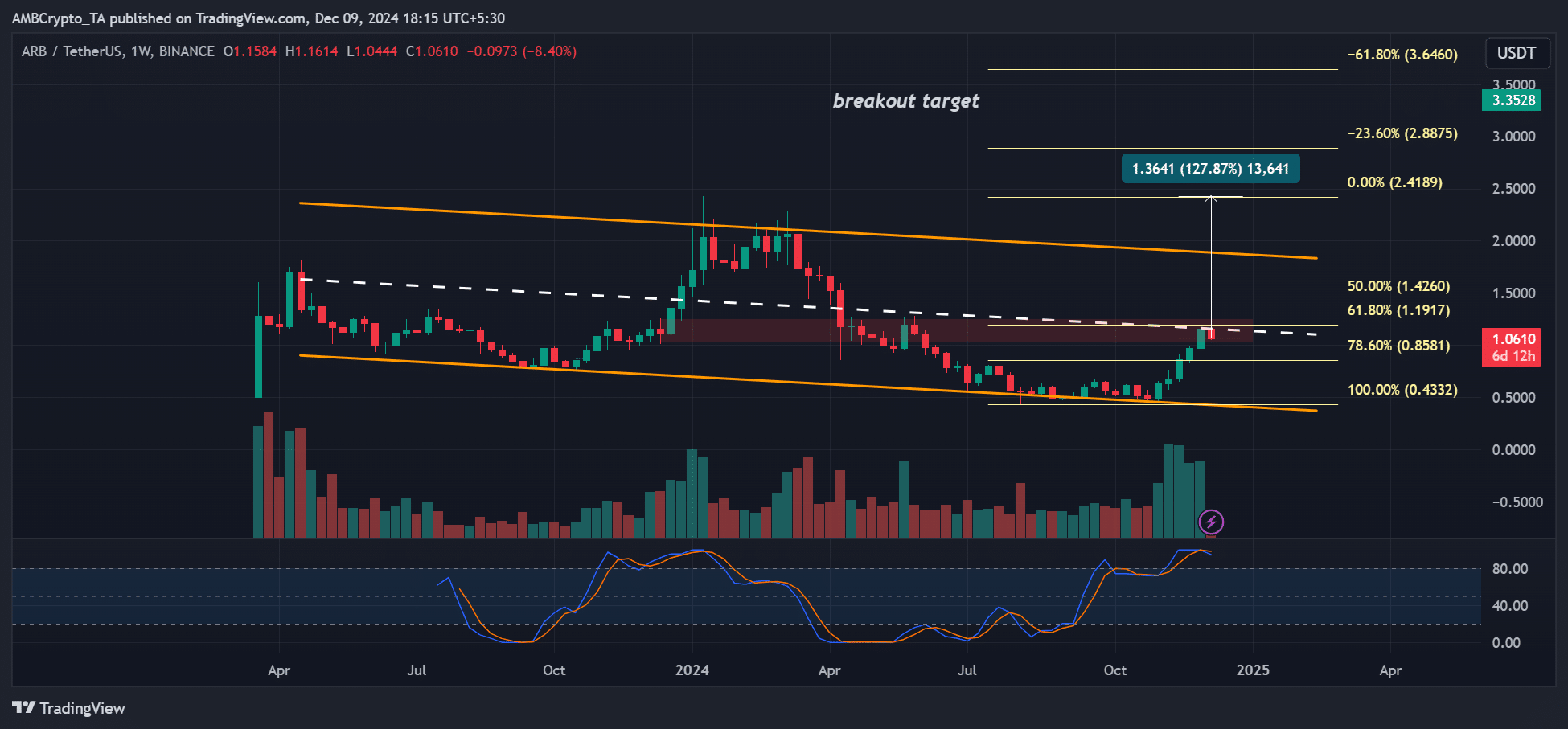The aforementioned observations, together, pointed towards a bullish outcome for ARB with potential +200% gains from January 2025.