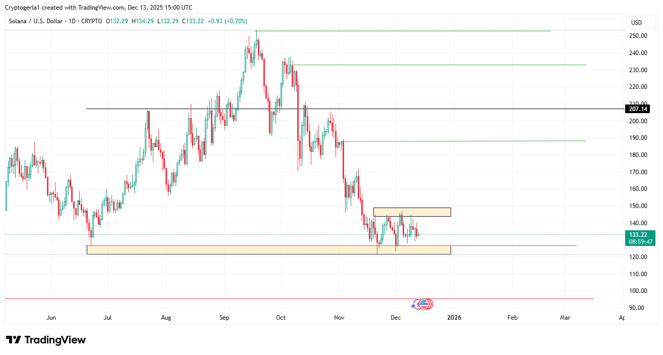 After falling from its 2025 highs, SOL slipped into a tight structure that has barely changed.
