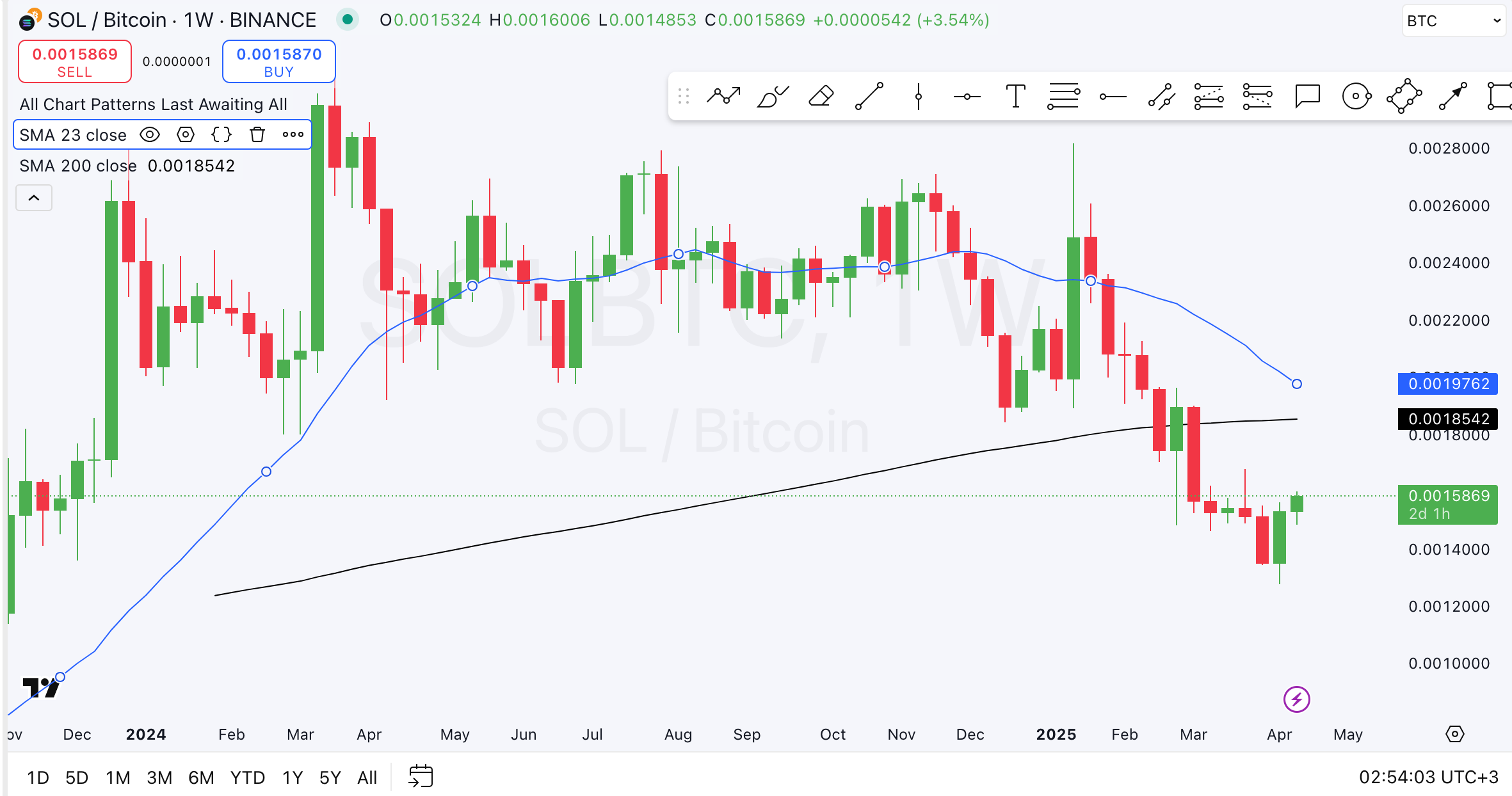 Over the past few months, Solana price has experienced a sharp decline when compared to Bitcoin. As of mid-April 2025, Solana is priced at 0.00158 BTC, down by 23% from earlier in the month. This comes after a significant 54% drop since January, showing a steady loss in value relative to Bitcoin.