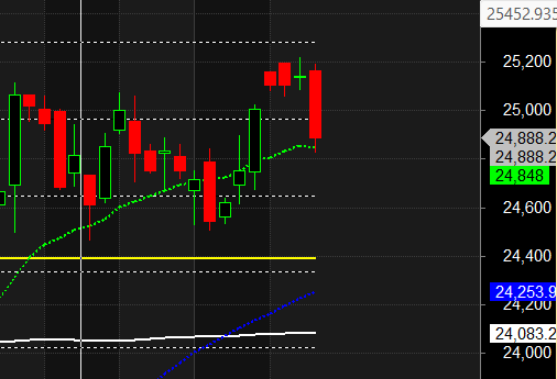 Nifty has closed above its 20 SMA @ 24856 Trend is Sell on Rise Till below 25000.