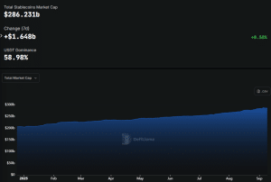 Since the GENIUS Act was signed into law in July, the stablecoin market cap has climbed from $260.715 billion to a record high $286.231 billion, according to DeFiLlama data.