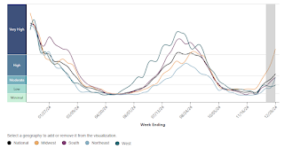 COVID in wastewater is “HIGH” according to the CDC – especially in the Midwest – and almost triple the lows of last May – and increasing sharply.  Something to watch.