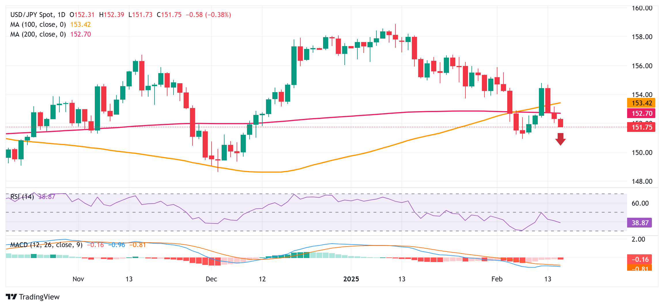 From current levels, the 151.45-151.40 area could offer immediate support ahead of the 150.95-150.90 region, or the lowest level since December 10 touched earlier this month. Given that oscillators on the daily chart are holding in negative territory, some follow-through selling would be seen as a fresh trigger for bearish traders. The USD/JPY pair might then accelerate the fall towards the 150.00 psychological mark en route to the 149.60-149.55 zone, the 149.00 round figure, and the December 2024 swing low, around the 148.65 region.