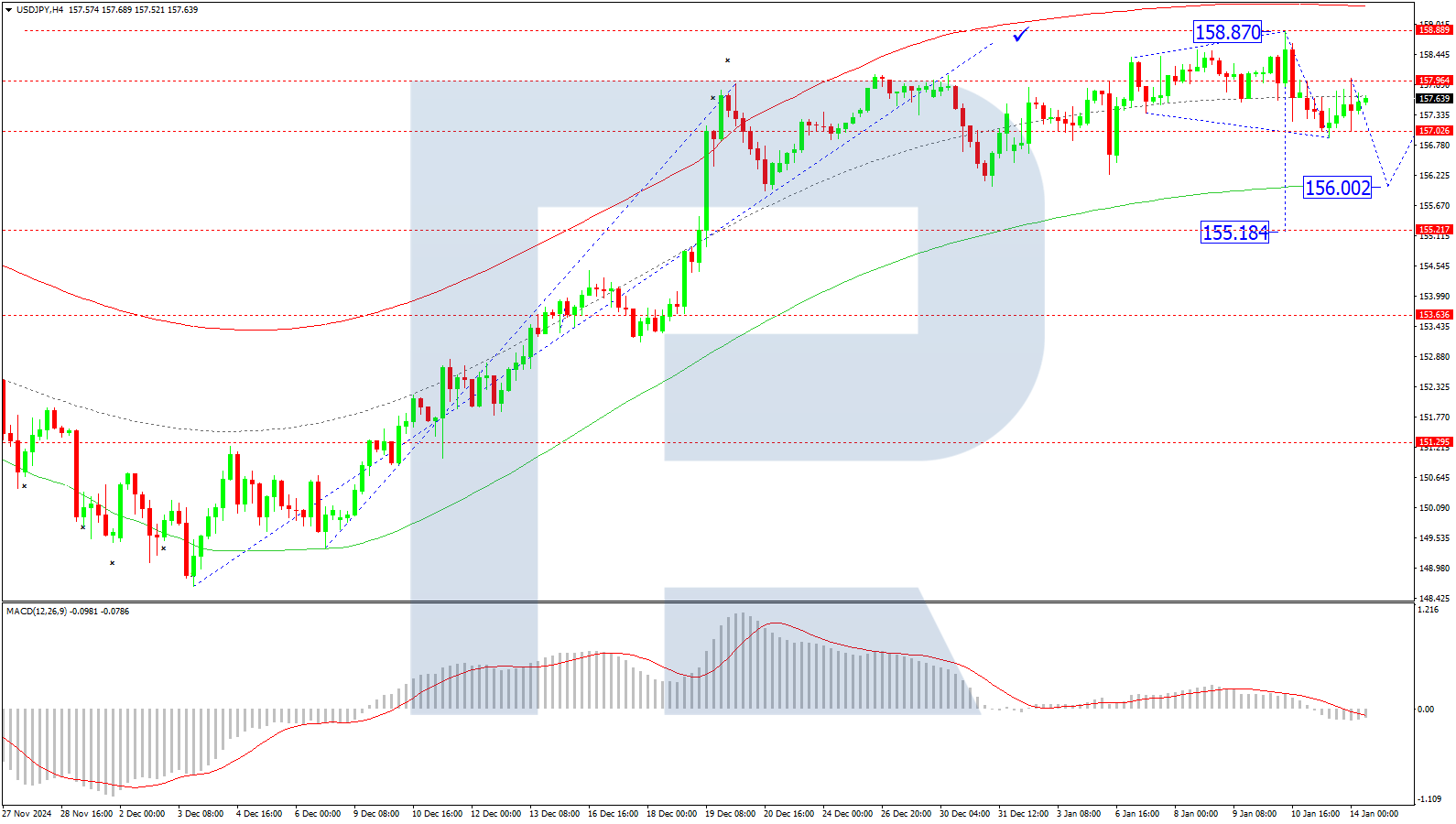 The yen’s recent movements highlight an ongoing struggle to recover amid limited support factors and external pressures from the US dollar. The technical outlook suggests a potential short-term decline in USD/JPY, with key support levels at 156.00 and 156.66. However, the broader trend will depend on upcoming developments from the BoJ and shifts in market sentiment around US monetary policy.