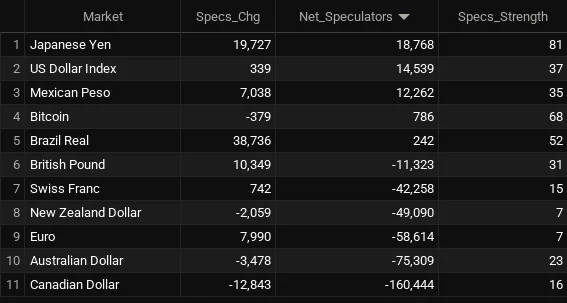 Weekly Speculator Changes led by Brazilian Real & Japanese Yen