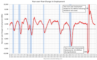 In June, the year-over-year change was 1.81 million jobs.  Employment was up solidly year-over-year.