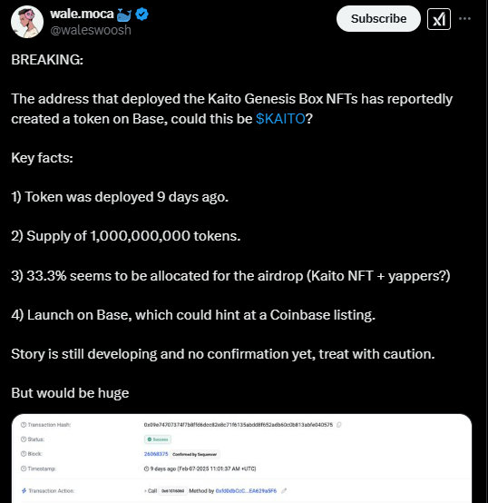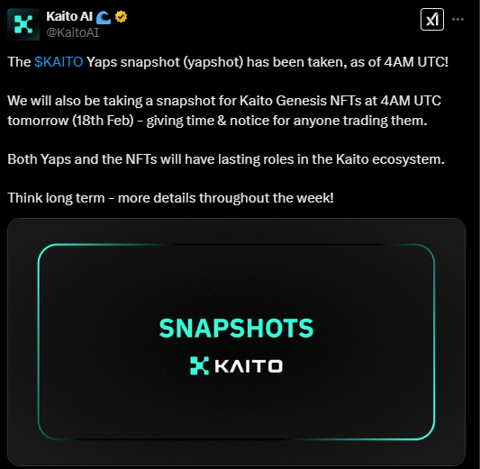Although all this information is vague, the eligibility criteria and user allocations are confirmed. According to the Kaito AI official X post, Kaito Genesis NFT holders and the Yapper (Yaps participants) are eligible for the airdrop.