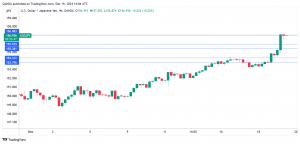 The Federal Reserve’s quarter-point rate cut was widely expected but the market was surprised by the Fed’s updated rate-cut forecast. In September, the Fed projected four rate cuts in 2025 but this was halved to just two cuts at the Wednesday meeting. US stock markets were sharply lower in response but the US dollar shined and rose sharply on Wednesday against all the major currencies, including 0.85% against the yen.