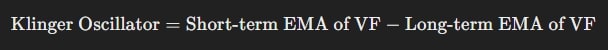 - Compute the Volume Multiplier (VM) using the Klinger oscillator formula.