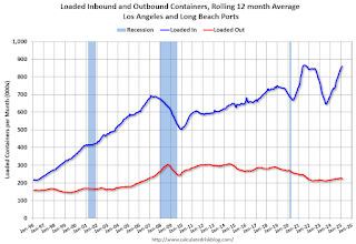 The following graphs are for inbound and outbound traffic at the ports of Los Angeles and Long Beach in TEUs (TEUs: 20-foot equivalent units or 20-foot-long cargo container).