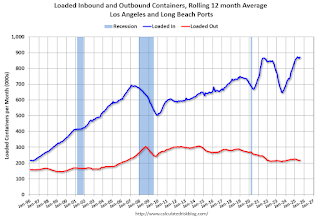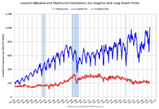 The following graphs are for inbound and outbound traffic at the ports of Los Angeles and Long Beach in TEUs (TEUs: 20-foot equivalent units or 20-foot-long cargo container).