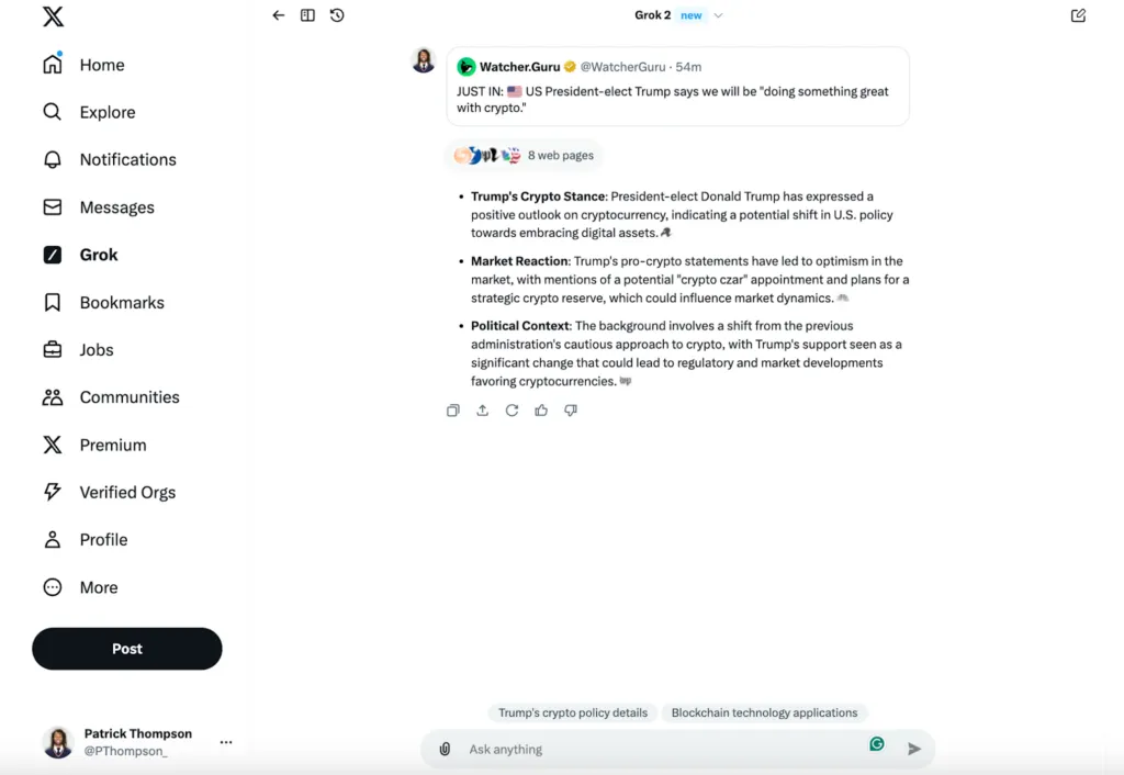 While its image generation capabilities are impressive, its text-to-text outputs fall short of industry standard. That being said, the Grok Analysis tool is the standout feature. It allows users to break down tweets into digestible summaries with context and links to related news or background information.