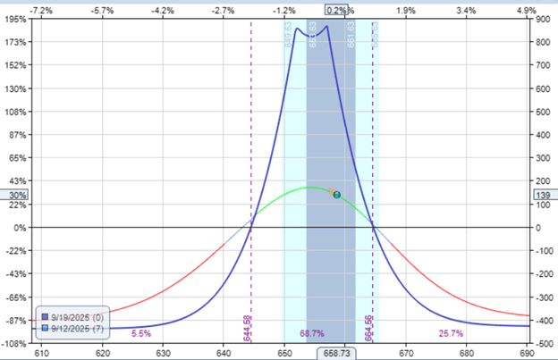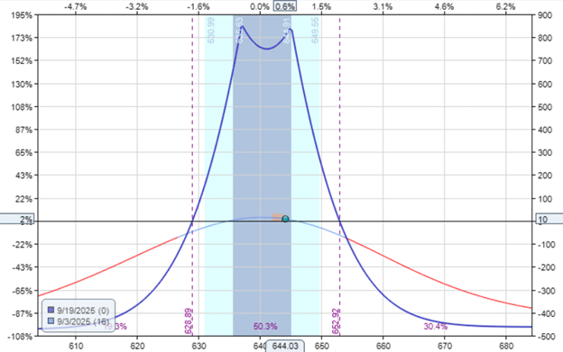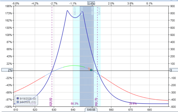 On September 10, 2025, we needed to leapfrog the lower calendar again to keep SPY in between the two calendar peaks.