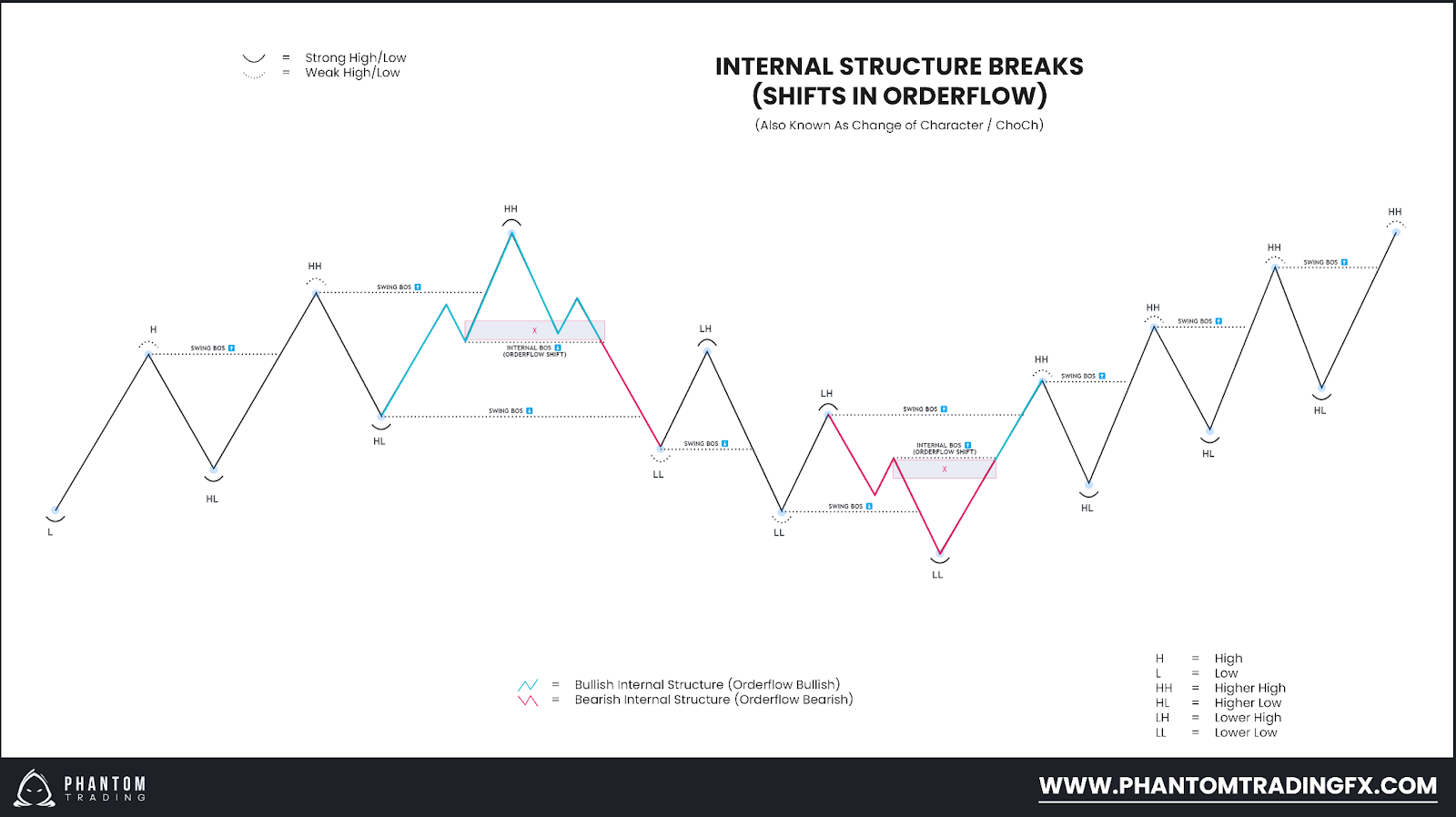 Figure 1 depicts the key components of market structure, including higher highs, higher lows, lower lows, and lower highs.
