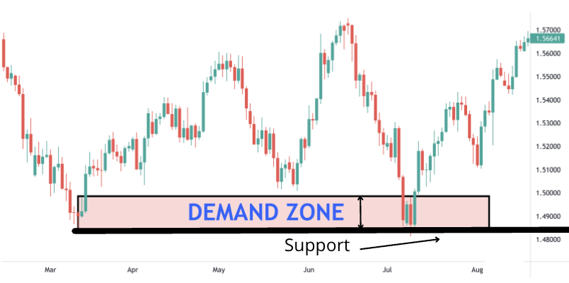 A Demand Zone, on the other hand, is an area where heavy buying takes place, pushing prices higher. When price revisits this zone, buyers might step back in, creating a bounce upward. These zones work like magnets, attracting price back to them before the market makes its next move.