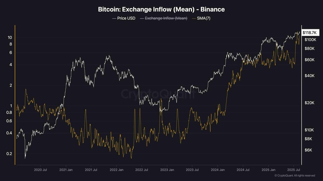 Binance’s seven-day mean inflow is spiking as we speak and has reached one of its highest levels seen in recent times.