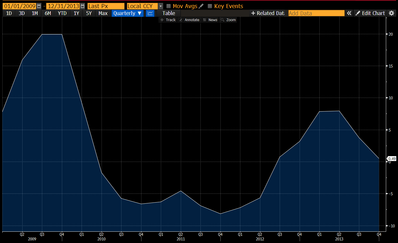 Цена долларов была фактически на уровне 0%. Предложение долларов резко выросло, достигло пика и пошло на спад в конце 2013 года.