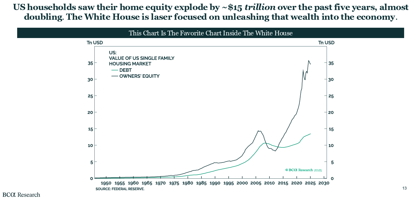 Трамп также говорит о снижении стоимости жилья, чтобы высвободить триллионы долларов заблокированного капитала в недвижимости из-за быстрого роста цен на жилье после 2008 года.