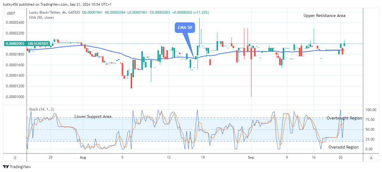 As of this writing, the Lucky Block established a solid base at the $0.0000206 high mark above the 50-day exponential moving average as the daily session resumes today, signaling the investors’ growing confidence in the asset.