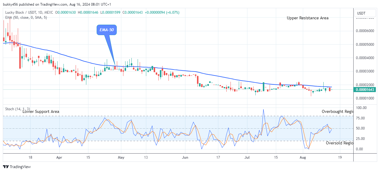 A rise to a $0.0000164 high level below the EMA-50 by the bulls as a pullback shortly after the daily chart opens today affirms the returns of the long traders into the Lucky Block market, and the price will rise soon.