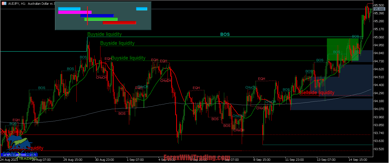 Liquidity is a fundamental concept in Forex trading, and the LuxAlgo System places significant emphasis on this. It identifies buyside liquidity as areas where buy orders are clustered, typically above resistance levels, and sellside liquidity as areas where sell orders accumulate, often below support levels.
