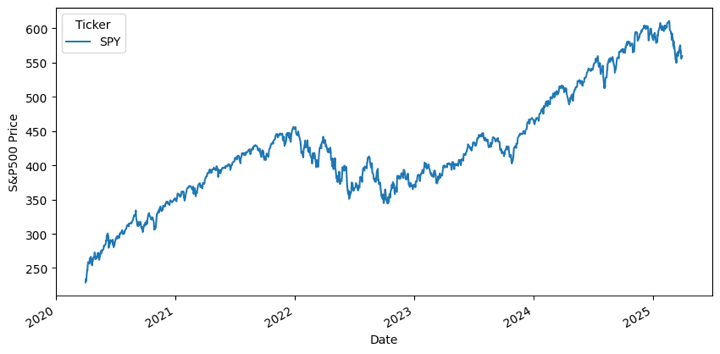 We’ll download S&P 500 data using the yfinance library: